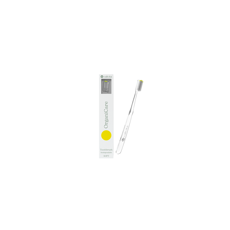 Biorazgradiva prirodna mekana četkica za zube s antibakterijskim učinkom. OrganiCare mekana četkica za zube temeljito i učinkovito čisti vaše zube, uključujući i područje između zuba, a pritom je nježna prema vašoj caklini i desnima. Vanjske čekinje su biljnog porijekla i izrađene su od ricinusovog ulja, a unutarnje su tretirane srebrom za antibakterijski učinak. Drška je napravljena od certificirane biorazgradive celuloze. Četkica je biorazgradiva, ekološki prihvatljiva i održiva. Vlakna dolaze u 4 različite nijanse: plavoj, žutoj, zelenoj i ružičastoj.